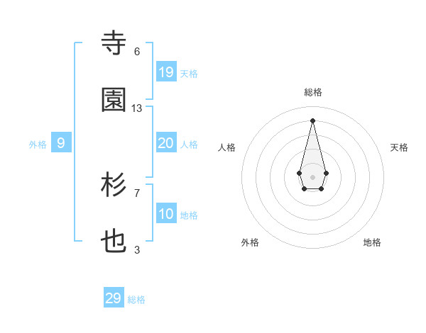 寺園 杉也さんを姓名の画数から五運を鑑定