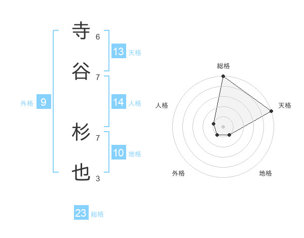 寺谷 杉也さんの天格は13画の5点!