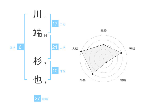 川端 杉也さんの天格は17画の4点!