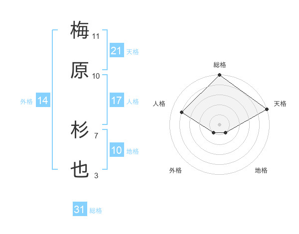 梅原 杉也さんを姓名の画数から五運を鑑定