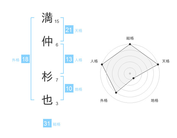 満仲 杉也さんを姓名の画数から五運を鑑定