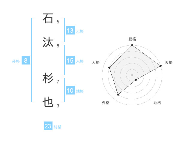 石汰 杉也さんの総格は23画の5点!