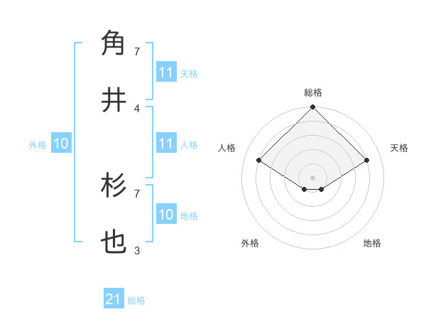 角井 杉也さんの総格は21画の5点!