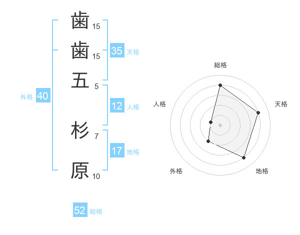 歯歯五 杉原さんの総格は52画の4点!