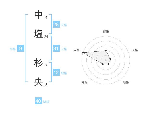 中塩 杉央さんの総格は40画の2点!