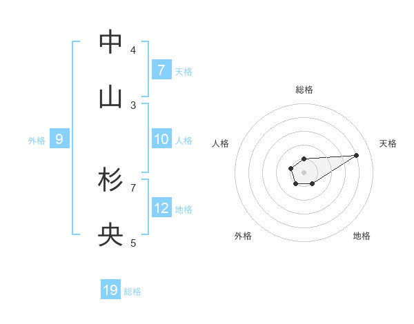 中山 杉央さんの総格は19画の1点!