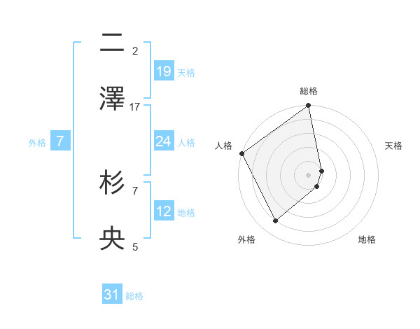 二澤 杉央さんを姓名の画数から五運を鑑定