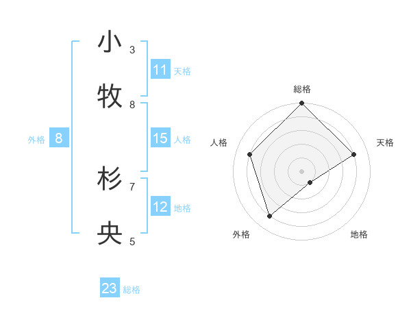 小牧 杉央さんの総格は23画の5点!