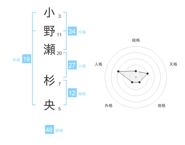小野瀬 杉央さんの総格は46画の1点!