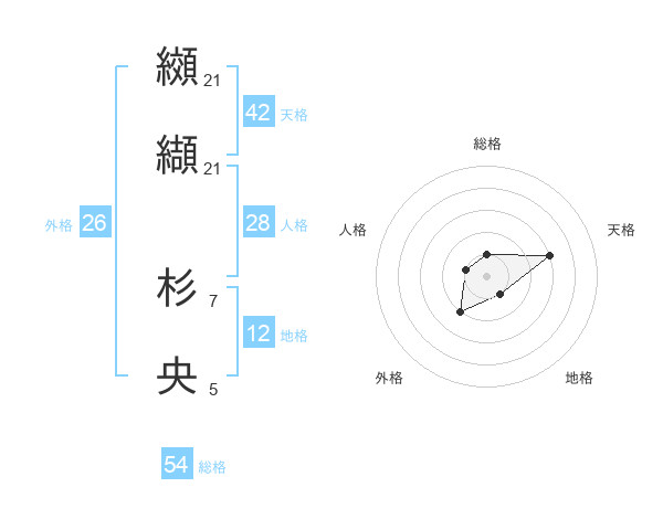 纐纈 杉央さんの総格は54画の1点!