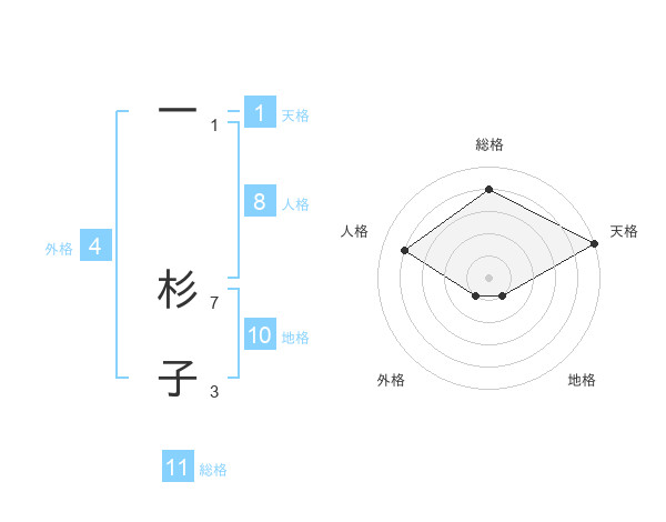 一 杉子さんの総格は11画の4点!