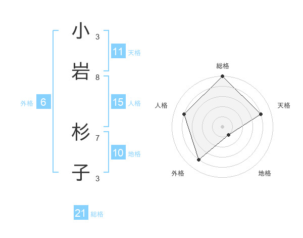 小岩 杉子さんの総格は21画の5点!