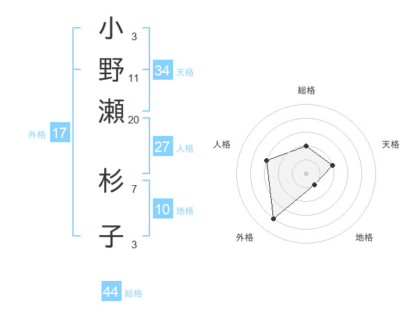 小野瀬 杉子さんを姓名の画数から五運を鑑定