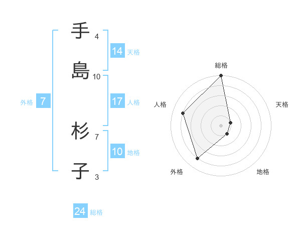 手島 杉子さんの総格は24画の5点!