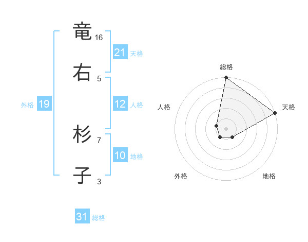 竜右 杉子さんを姓名の画数から五運を鑑定