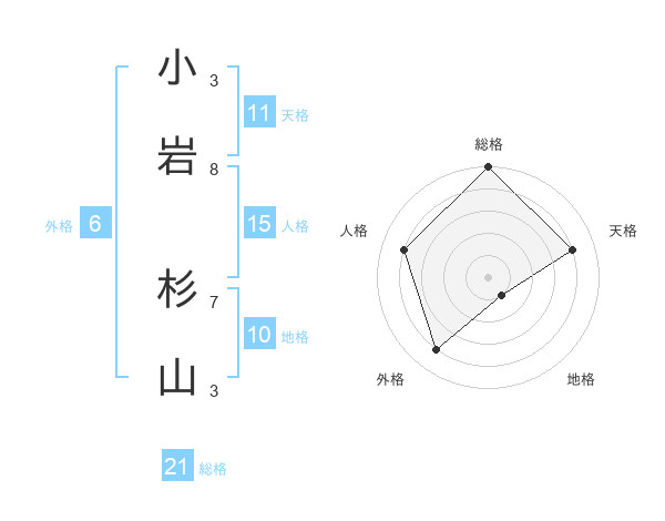 小岩 杉山さんの総格は21画の5点!