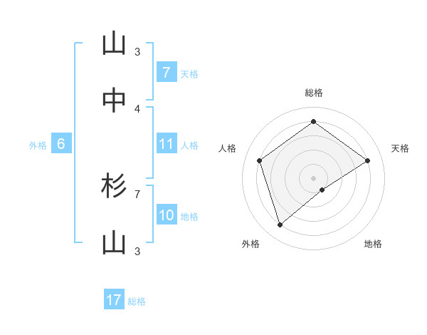 山中 杉山さんの総格は17画の4点!