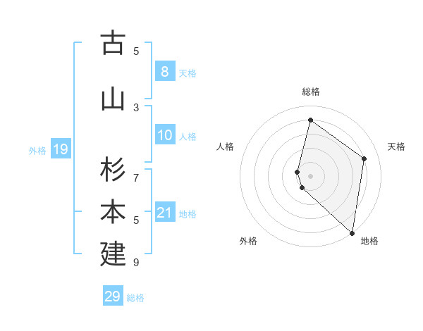 古山 杉本建さんを姓名の画数から五運を鑑定