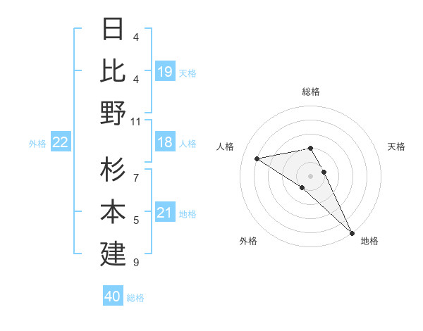 日比野 杉本建さんを姓名の画数から五運を鑑定