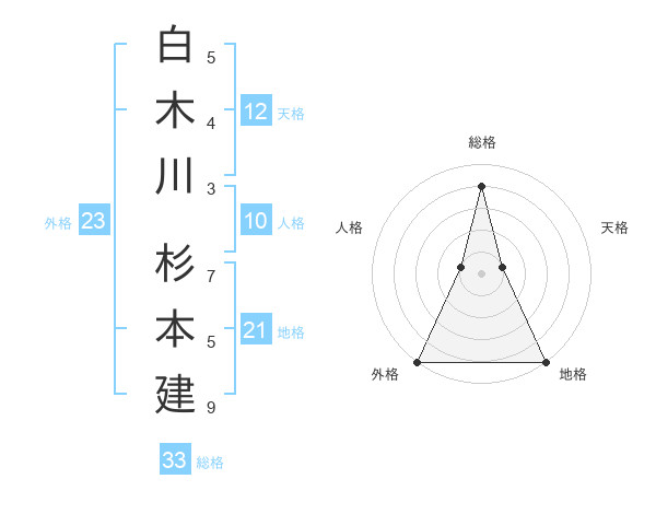 白木川 杉本建さんを姓名の画数から五運を鑑定