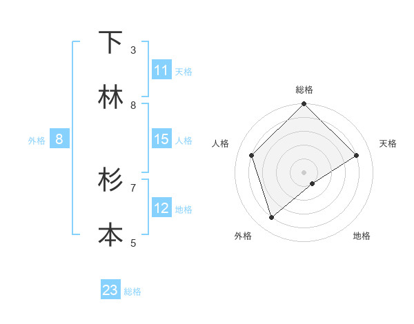 下林 杉本さんの人格は15画の4点!