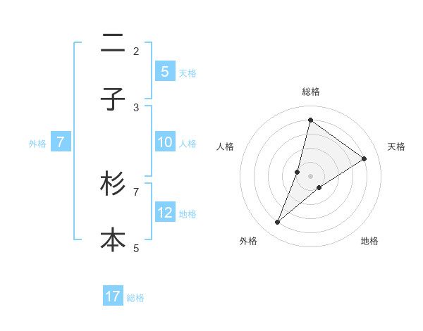 二子 杉本さんの総格は17画の4点!
