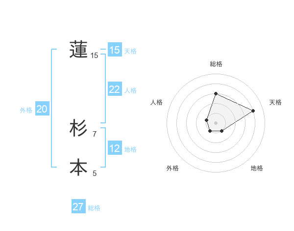 蓮 杉本さんの総格は27画の3点!