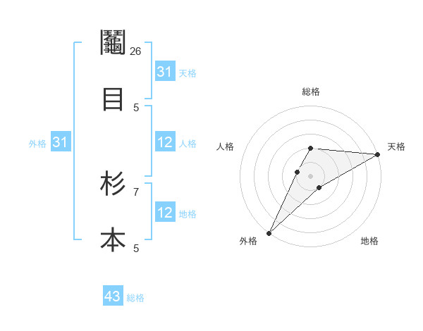 鬮目 杉本さんを姓名の画数から五運を鑑定
