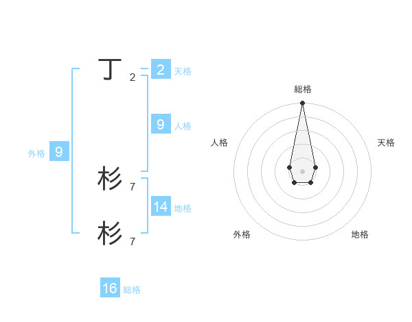 丁 杉杉さんの総格は16画の5点!