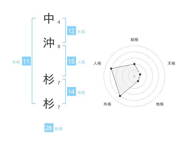 中沖 杉杉さんの人格は15画の4点!
