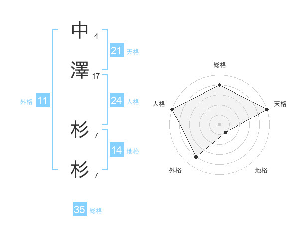 中澤 杉杉さんを姓名の画数から五運を鑑定