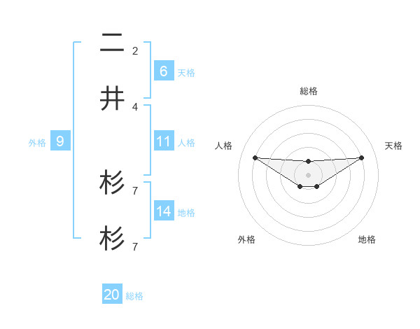 二井 杉杉さんを姓名の画数から五運を鑑定