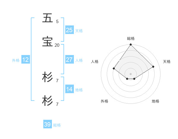 五宝 杉杉さんの総格は39画の5点!