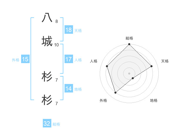 八城 杉杉さんの総格は32画の5点!