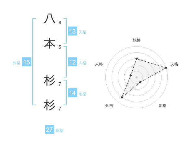 八本 杉杉さんの天格は13画の5点!