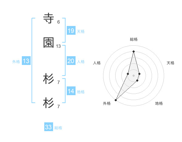 寺園 杉杉さんの外格は13画の5点!