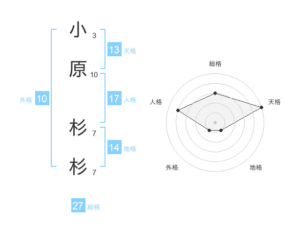 小原 杉杉さんの天格は13画の5点!