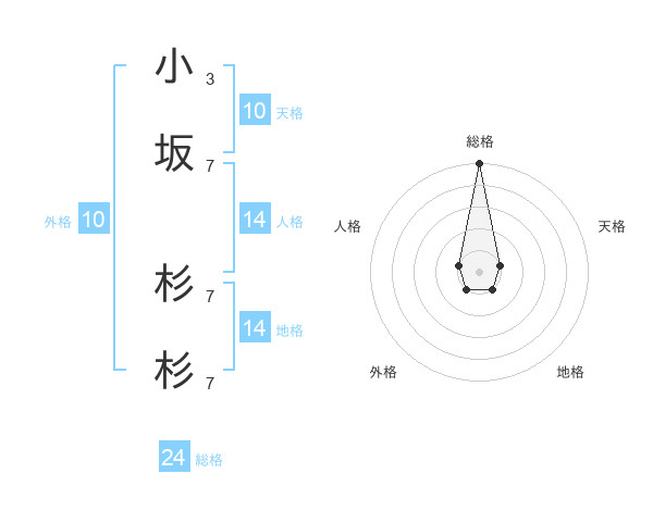 小坂 杉杉さんの総格は24画の5点!