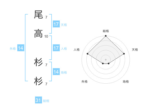 尾高 杉杉さんの天格は17画の4点!