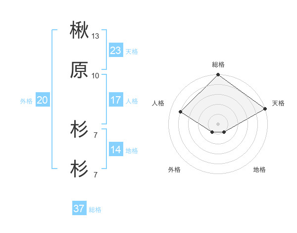 楸原 杉杉さんの天格は23画の5点!