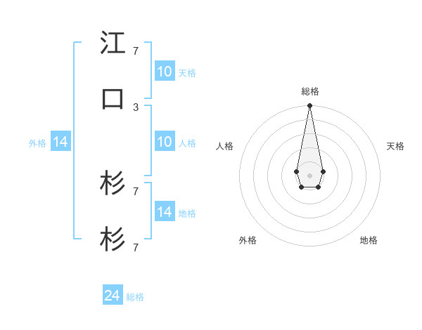 江口 杉杉さんの総格は24画の5点!