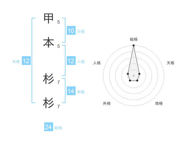甲本 杉杉さんの総格は24画の5点!