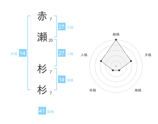赤瀬 杉杉さんを姓名の画数から五運を鑑定