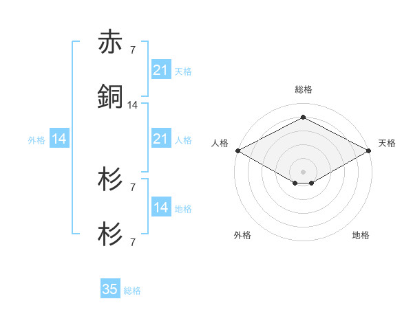 赤銅 杉杉さんの総格は35画の4点!