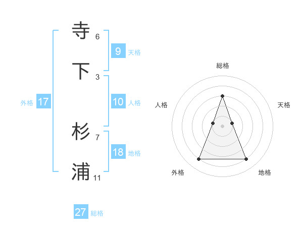 寺下 杉浦さんの総格は27画の3点!
