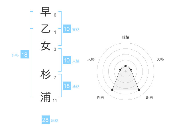 早乙女 杉浦さんの総格は28画の1点!