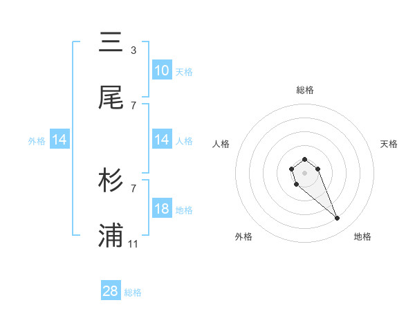 三尾 杉浦さんの総格は28画の1点!