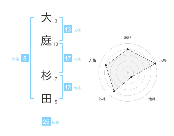 大庭 杉田さんを姓名の画数から五運を鑑定