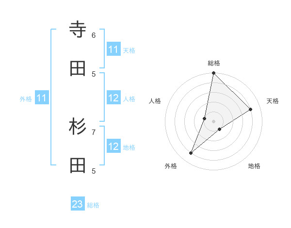 寺田 杉田さんを姓名の画数から五運を鑑定