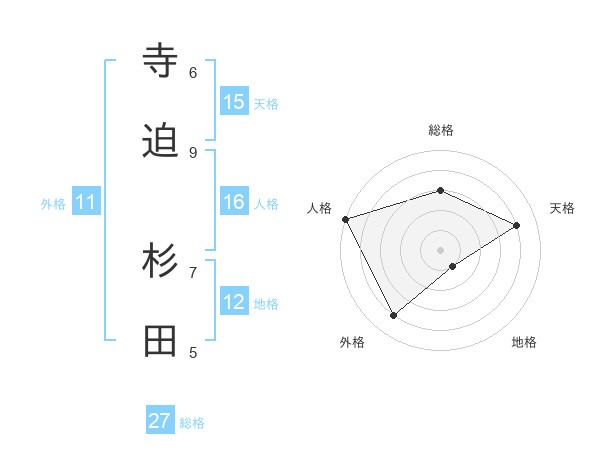 寺迫 杉田さんの天格は15画の4点!